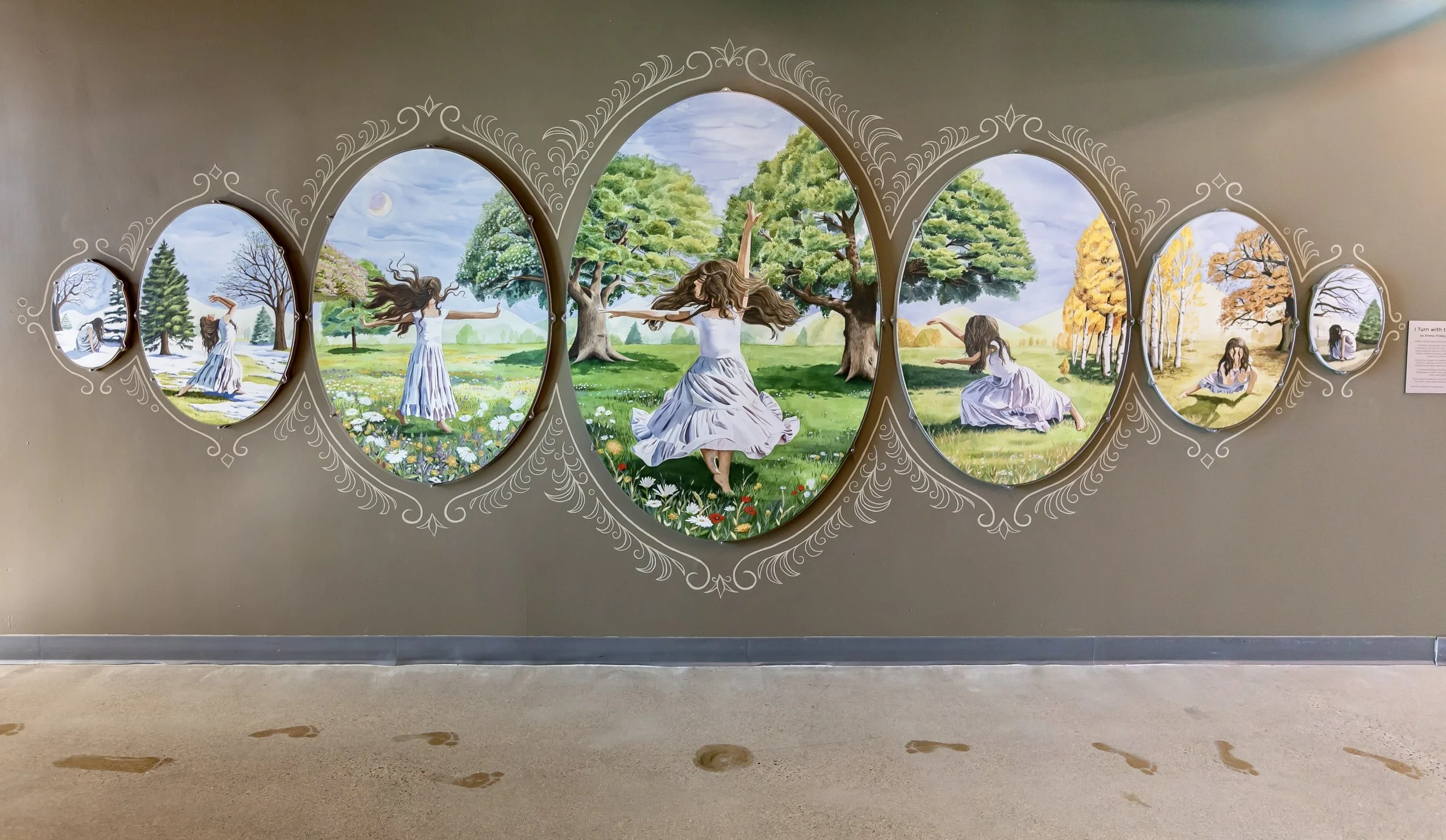 The paintings follow a child blooming with spring flowers, twirling through summer, falling with autumn leaves, and settling into winter stillness. The series is inspired by the idea that humans are an integral part of nature, and that we can deeply connect with the Earth through movement, art, and imagination.