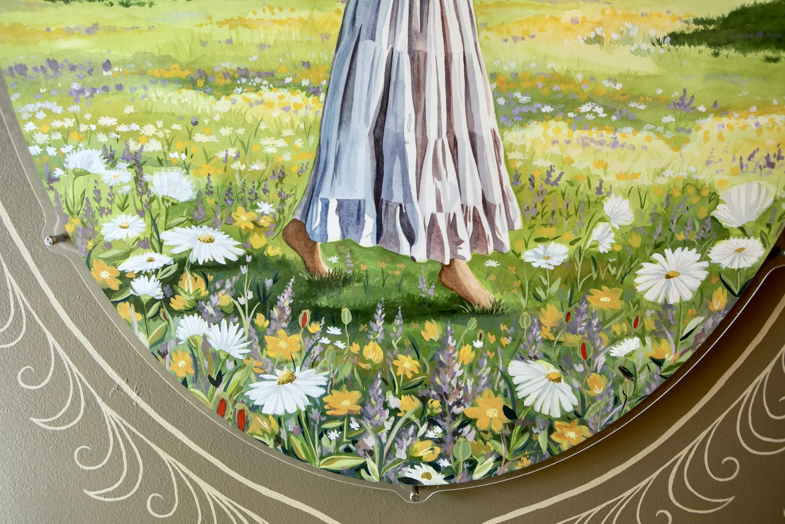 Because nature is central to my practice, painting the small details of flowers, grasses, and trees became a deeply meditative process. Each leaf and petal was an opportunity to slow down, observe, and honor the quiet beauty of the natural world, reinforcing the sense of presence and care that I hoped the installation would evoke.